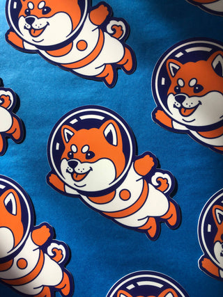 Le Shiba Inu décolle ! Cet autocollant en vinyle de haute qualité représente le courageux Shiba Inu en combinaison spatiale, prêt pour sa prochaine mission à travers l'univers. Entouré de planètes, d'étoiles et de caractères japonais, il apporte une touche rétro et une ambiance science-fiction kawaii à n'importe quelle surface.